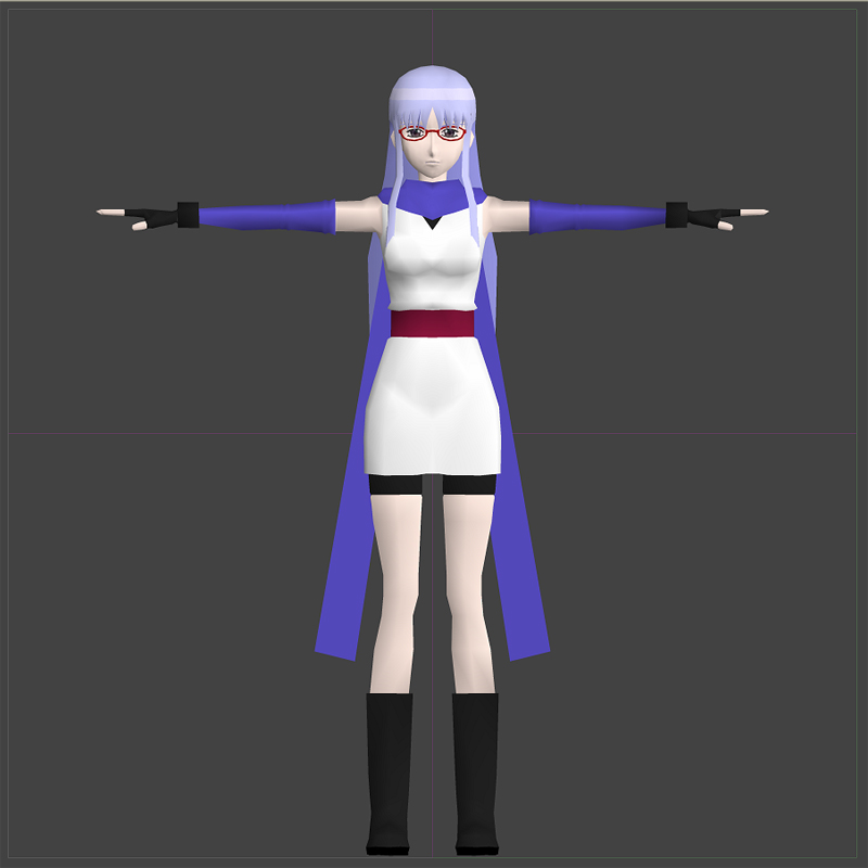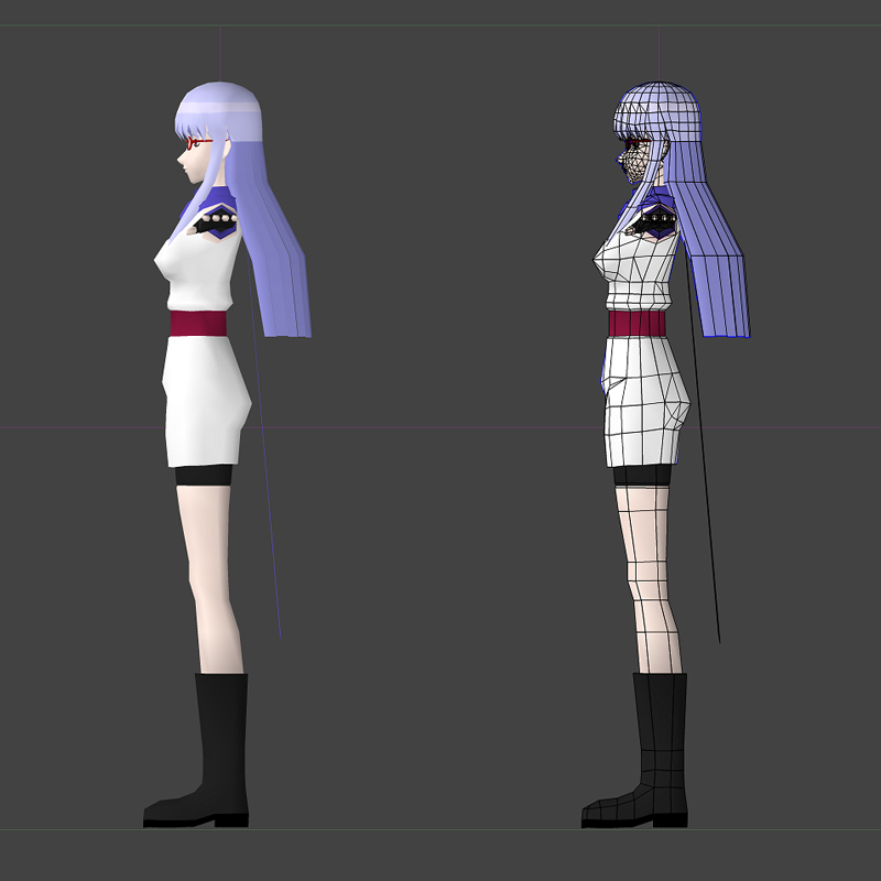 さっちゃんの始末屋コスは、割とゴテゴテしたディティールが少なくシンプルなので、そんなに無理にポリゴン増やすことも無いのかも。