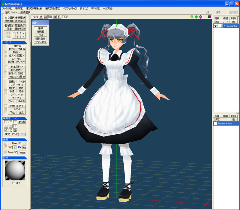 MMDの基本モデル「あにまさ初音ミクVer2」をメタセコに取り込んでみる。