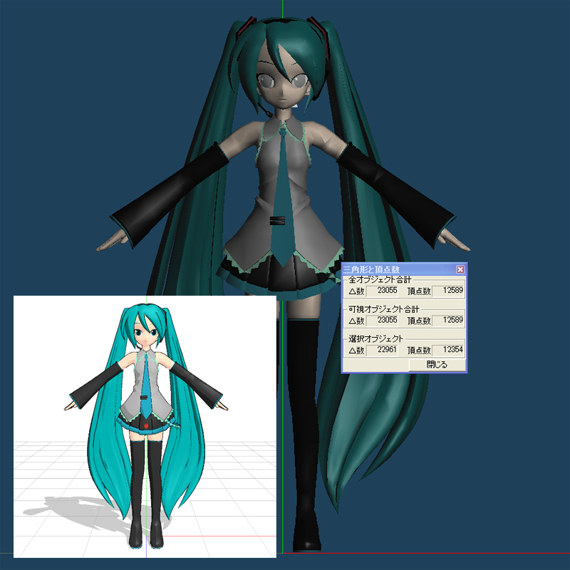 というわけで、目安としてあにまさミクの23000ポリゴンを目標にします。