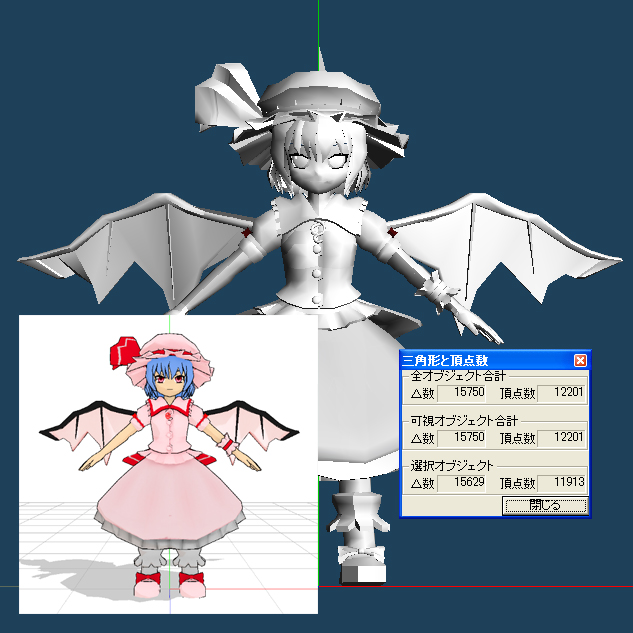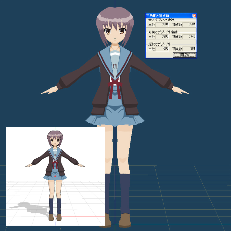 過去に作ったPMDモデルはどちらも5000ポリゴン前後で少なすぎますな。
