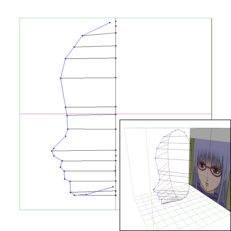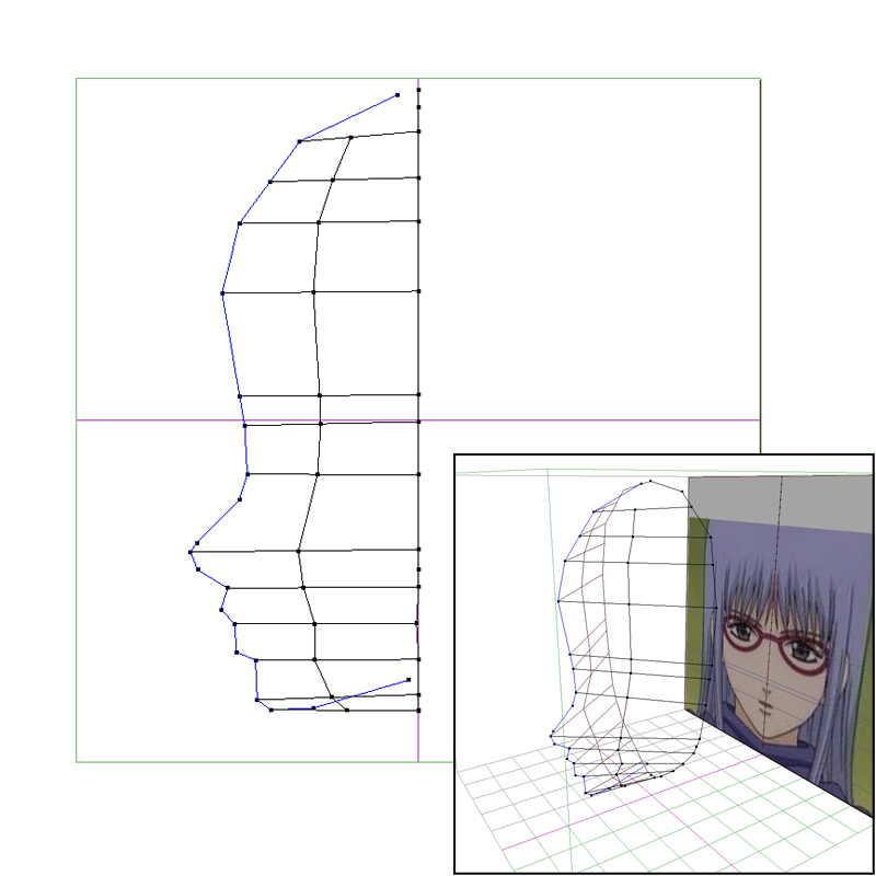 二次絵だとどうにも目鼻口の高さが合わない場合があるので、お勧めはすでに立体化されたフィギュアの画像などがいいかも。