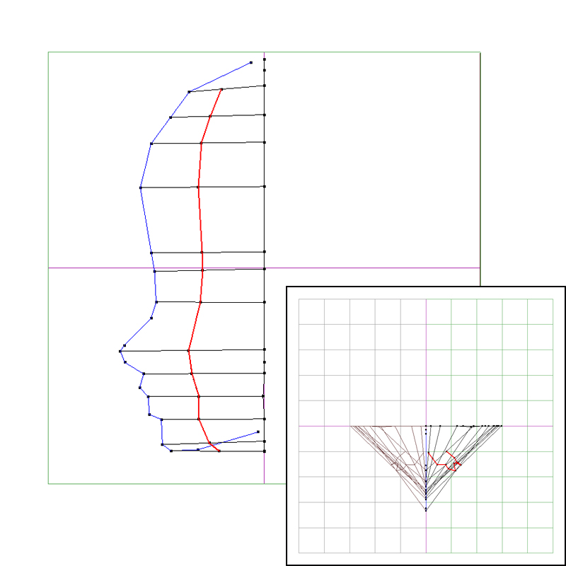 六角で有名なのはキャラの斜め横から見たときのあのライン引きですが、あそこから始めないキャラの顔モデリングアプローチなど。