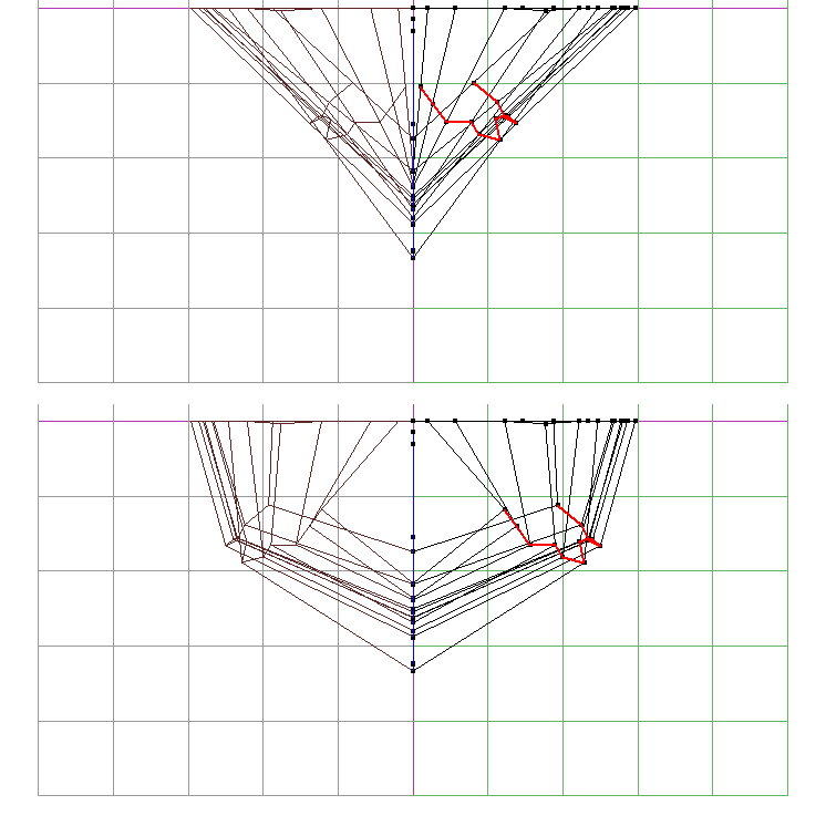 前から見て移動させた中間の縦線を、元の横線より内側になるよう移動させる。