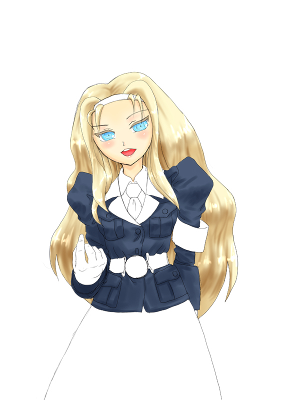 服は水彩を乗算で塗りました。自分はブレンドで色乗せるときは下地と同じ色で塗ってます。本にはその辺はあんま詳しく書いてない模様。青地に赤系でブレンドすると紫系の陰になりますが、元の色がベースになるので違和感のない陰が乗るってのがこの手法ですな。