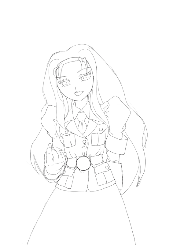 ラフをベースに細ブラシで正解の線を仕上げていきまする。SAIの画面の回転機能はいいっスな。PSは角度入力せよとか言ってぐりんぐりんできないし。