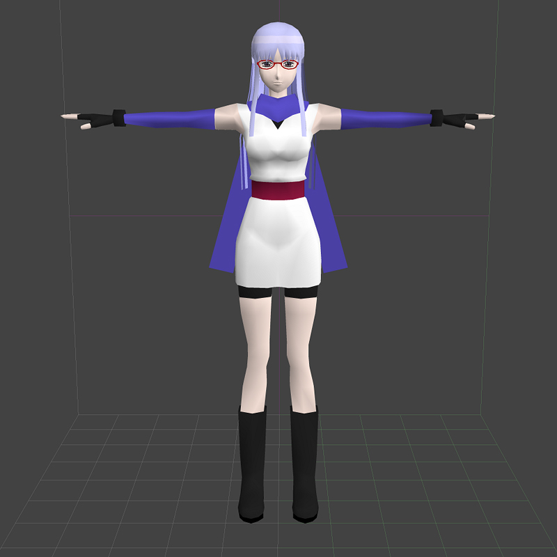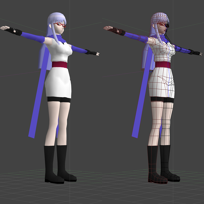 さっちゃんの始末屋コスは、割とゴテゴテしたディティールが少なくシンプルなので、そんなに無理にポリゴン増やすことも無いのかも。